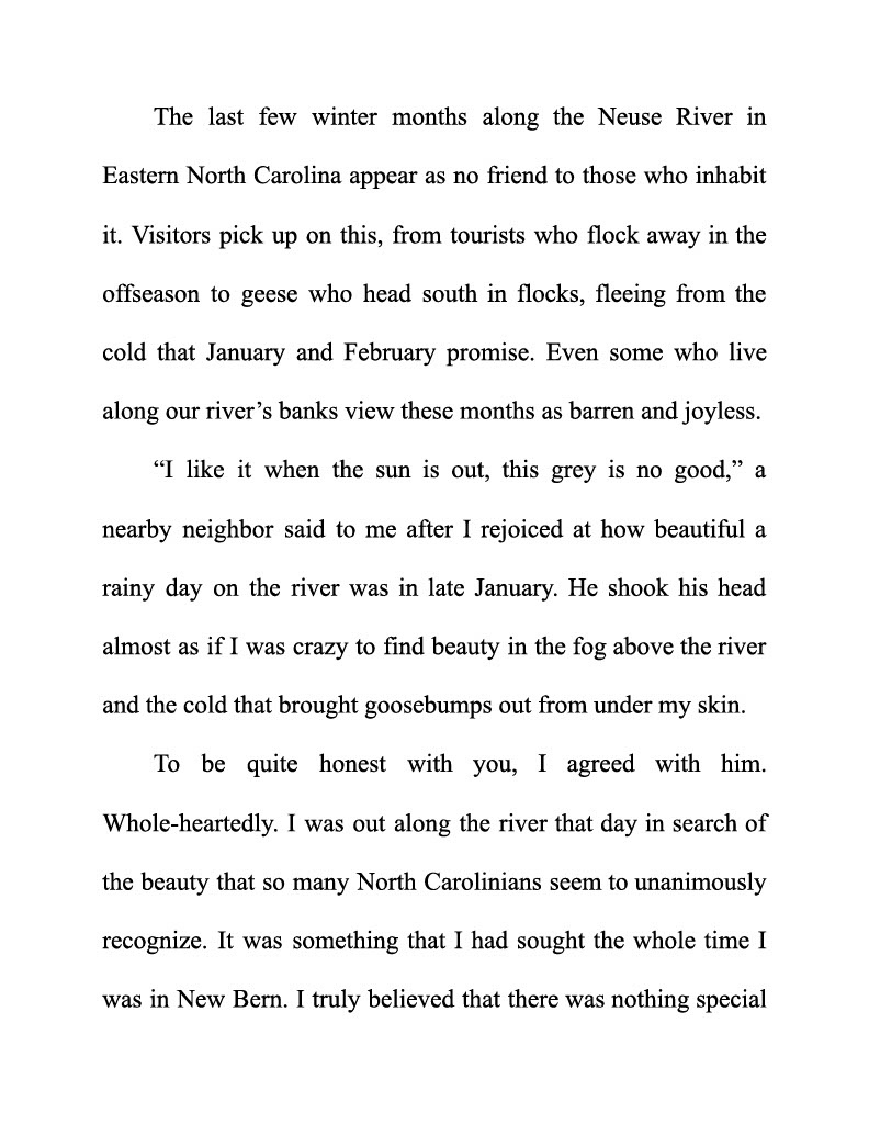 Home A Narrative From the Neuse Explore A Narrative From the Neuse: Growing With the River's Edge Surf, Wind and Fire Creatives